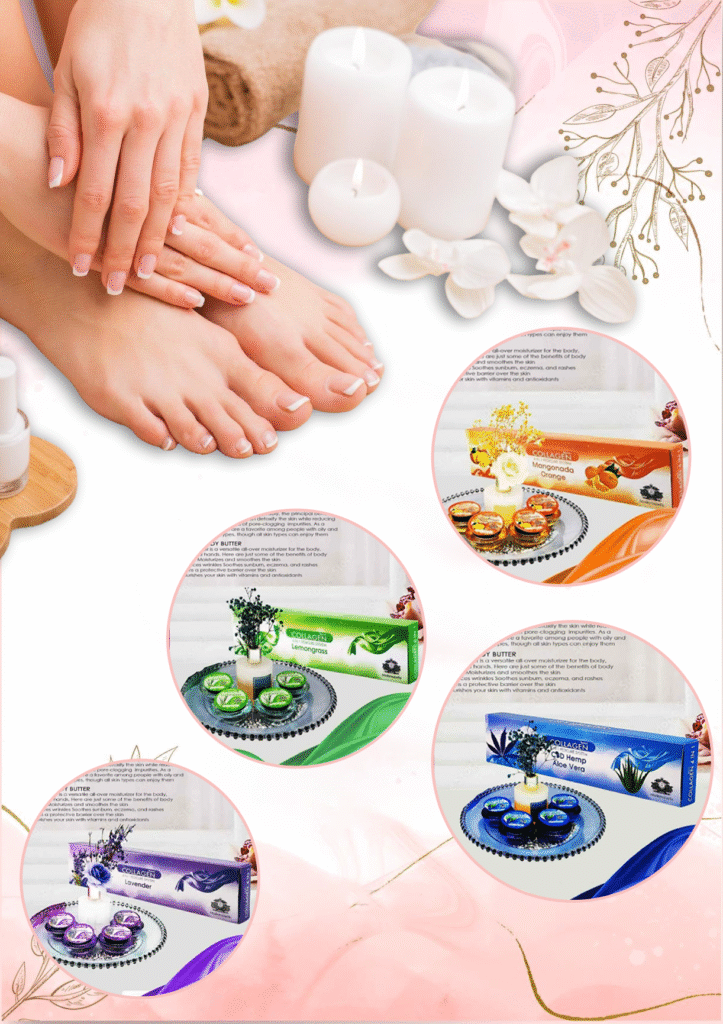 Rejuvenate your feet with a collagen-infused milk soak designed to nourish and restore. This treatment includes sugar scrub exfoliation, callus smoothing, and a collagen moisture mask with warm towel wrap to lock in hydration. Enhanced with a paraffin wax treatment and finished with a 16-min hot stone and candle oil massage, it leaves your feet luxuriously smooth and revitalized.