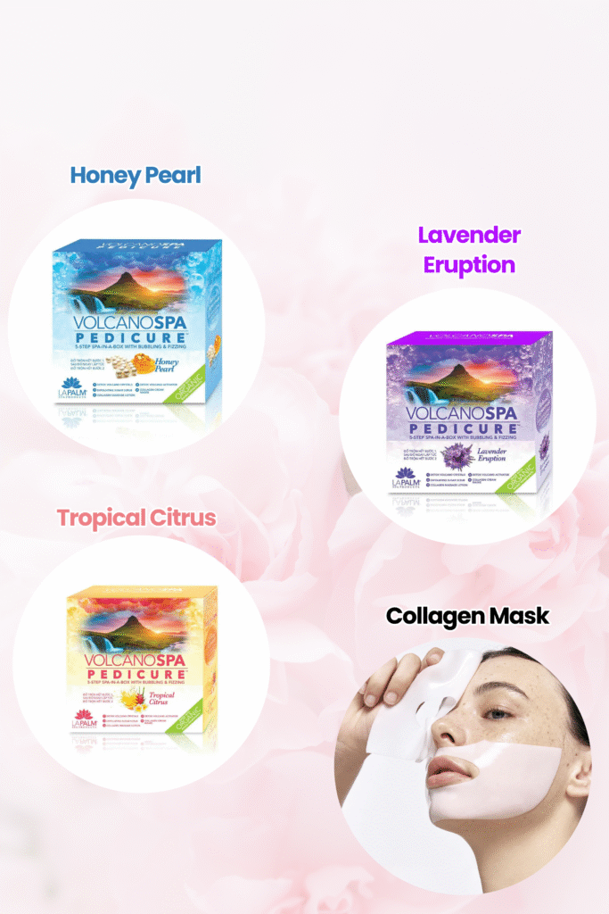 Relax and rejuvenate with La Pal-Spa, a new luxury spa experience in a single-use pedicure treatment. Add Step 1 and Step 2 to the spa water to experience the bubbling volcano eruption Each packet is individually filled with the precise amount of product for a single pedicure, paraffin & hot stone massage. Available in six amazing scents Volcano Spa includes five steps Detox Volcano Crystals, Detox Volcano Activator, Exfoliating Sugar Scrub, Collagen Cream Mask, Collagen Massage Lotion and Candle Oil